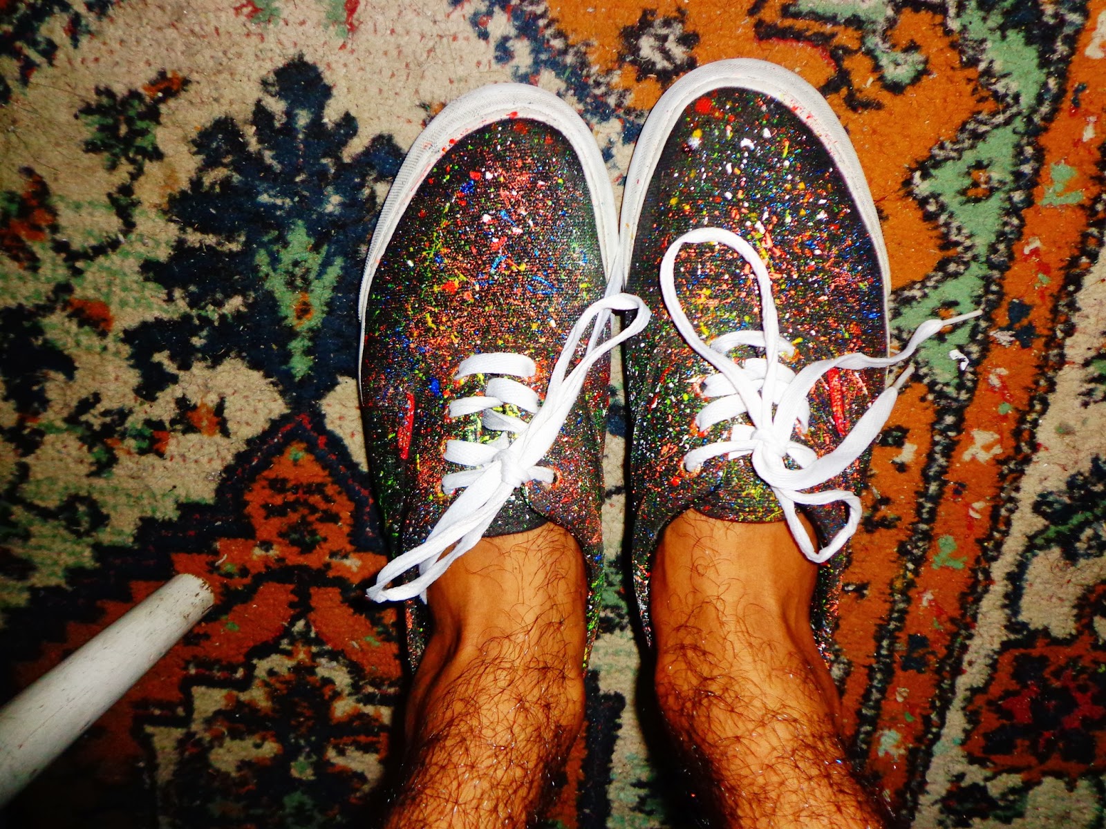 E é assim que fica o seu tênis :3 Eu gostei muito muito muito mesmo e pessoalmente está ainda mais bonito pois usei umas tintas com glitter que deram um brilho sensacional ao tênis ♥ (eu troquei a cor do cadarço porque achei que um branco combinaria melhor).